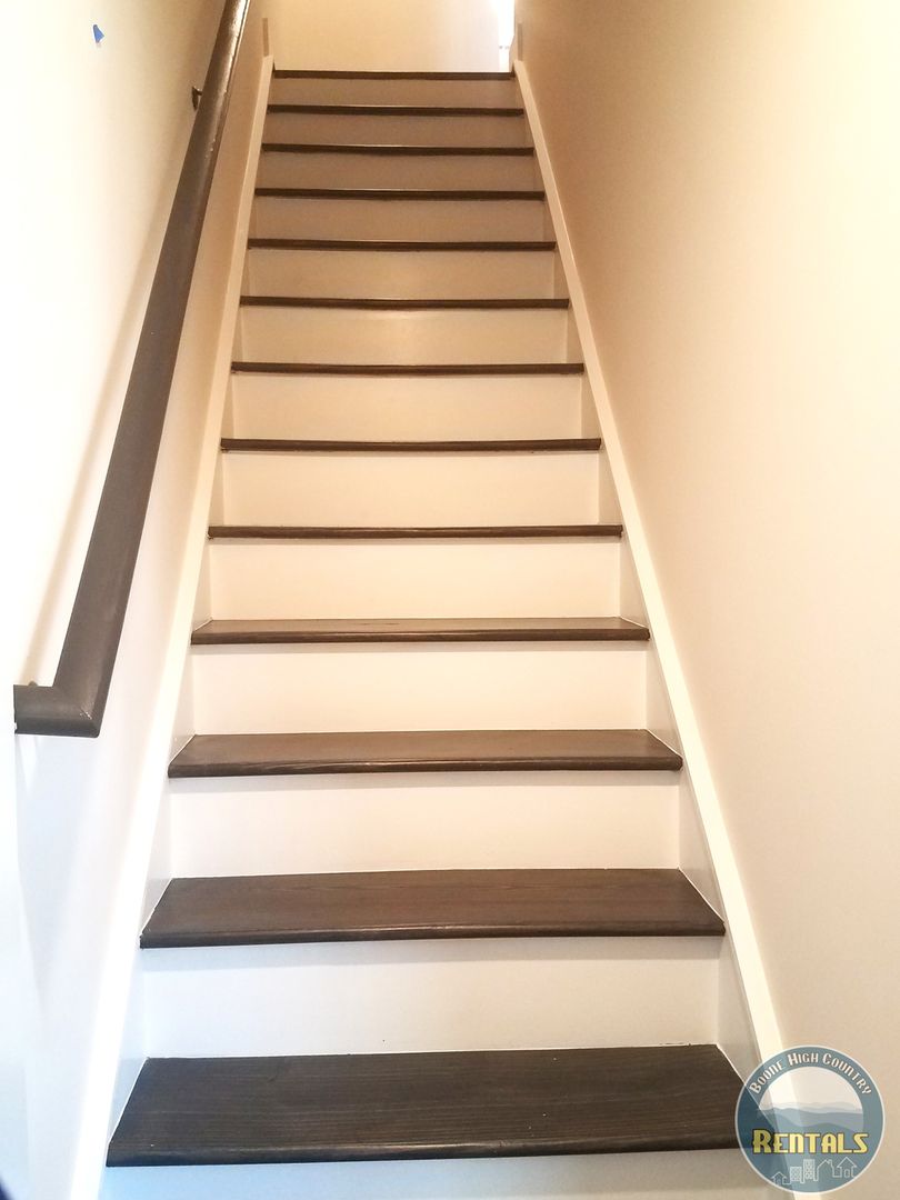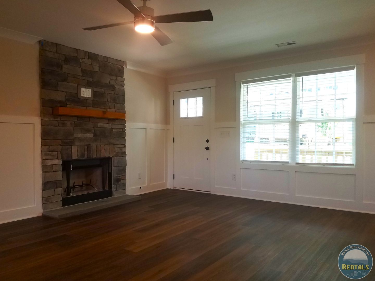 225 Stratford is an end unit at the entrance to the community with a front covered deck and 2 parking spaces. Walk inside the front door to the spacious open floor concept. The living area features white wainscoting, crown molding, and a stone fireplace as the centerpiece. The kitchen boasts stainless steel appliances, subway tile backsplash, beautiful white countertops, large basin sinks, and a sizable pantry. Enjoy seeing the beautiful mountain views from your kitchen window. The back door leads to your 2nd spacious open deck with a shaded view of the mountains. The downstairs also includes a coat closet, laundry closet, and half bath.