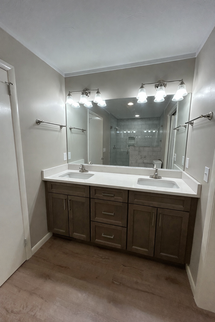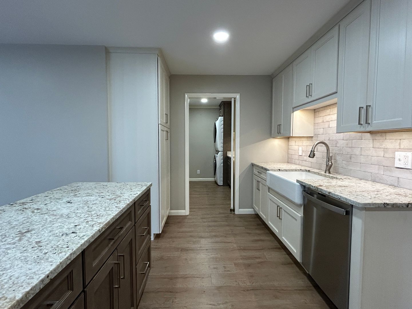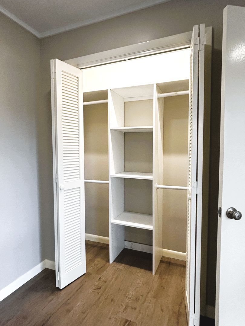 The main living area includes four bedrooms and three full bathrooms, with two primary suites featuring en-suite baths. Ample closet space throughout provides excellent storage.