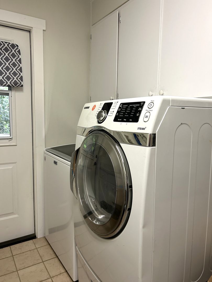 The upper level includes an updated kitchen with newer appliances, two bedrooms, a full bathroom, dining area, and the main living room. Downstairs, you'll find the laundry area, an additional living space, a full bathroom, and a primary bedroom.
