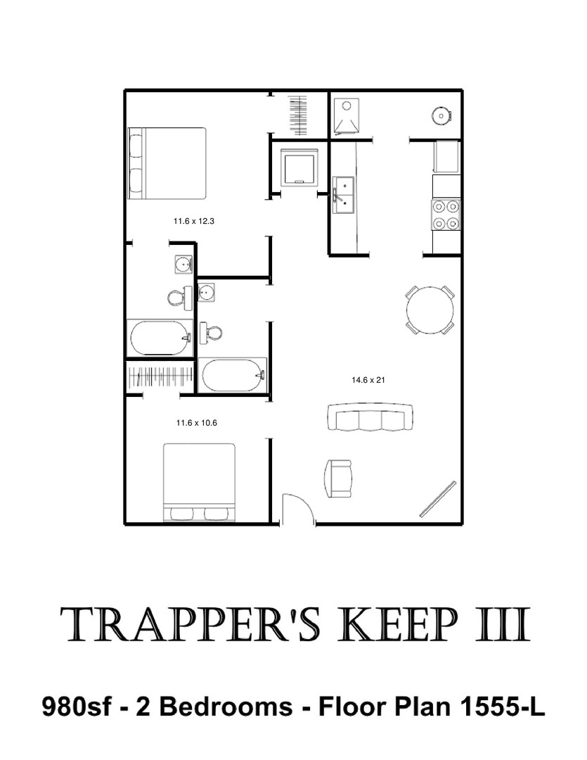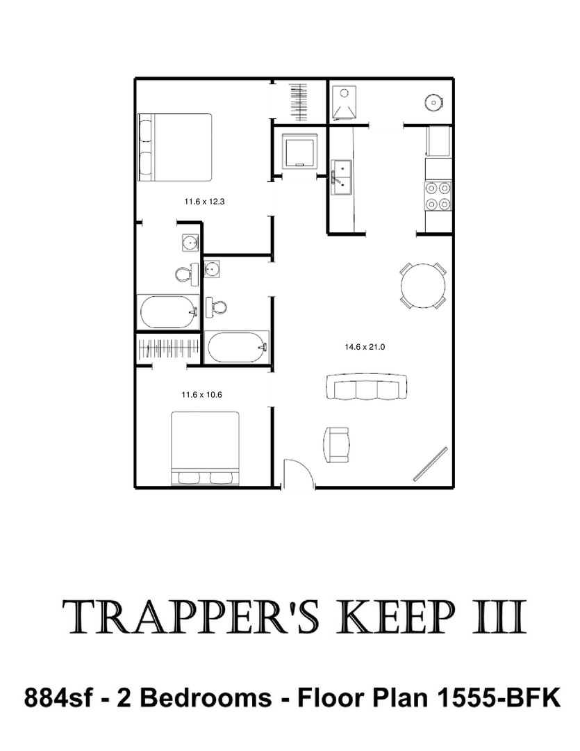 View a Virtual 3D tour of the Trapper's Keep 3 two bedroom here: https://my.matterport.com/show/?m=HMUye1YVhiA