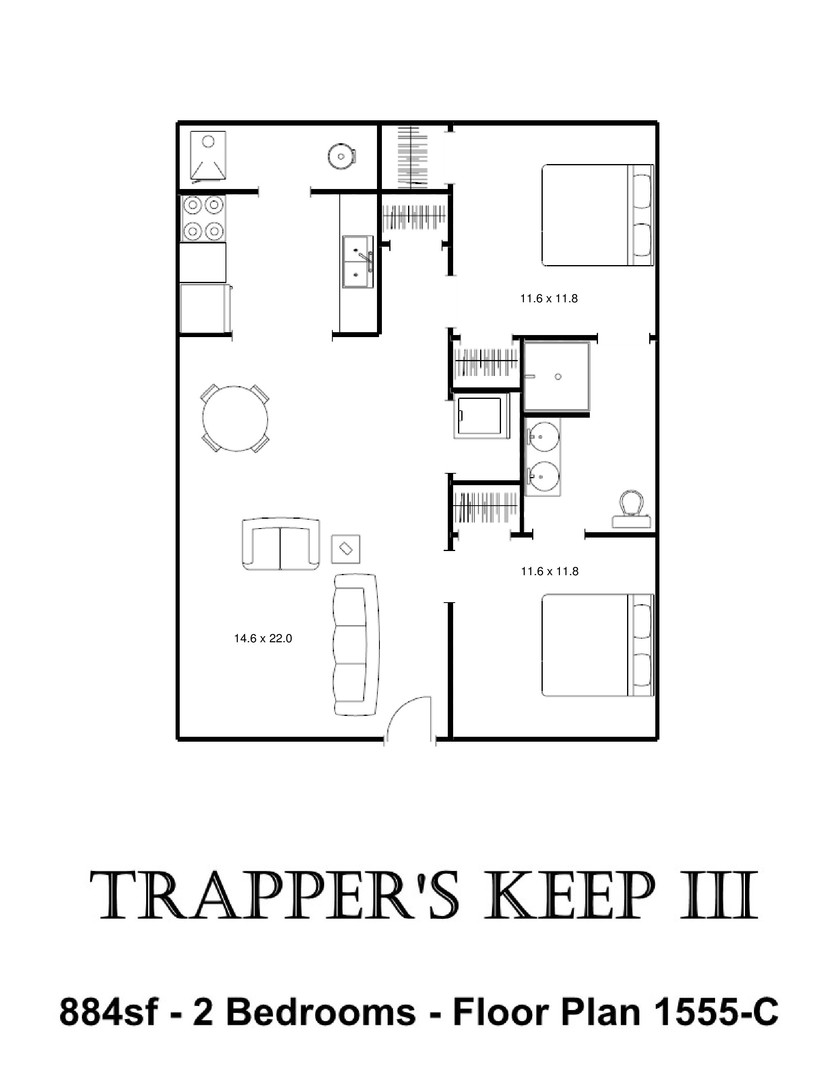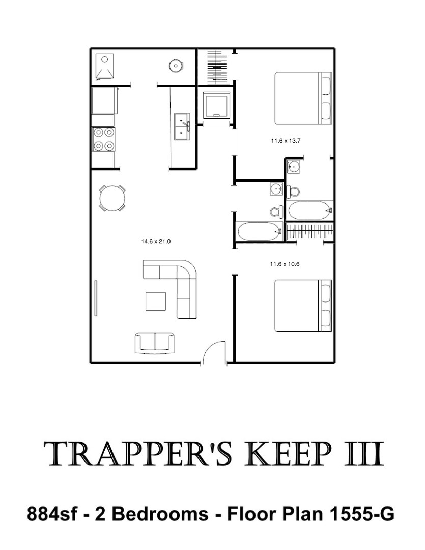 Trapper’s Keep 3 rents vary based on bedroom and are individual leases. In the 2-bedroom units, the larger bedroom rents for $970 while the smaller bedroom rents for $960. In the 3-bedroom units, the bedrooms with an attached bath rent for $930 and the bedroom with the detached bath rents for $915. The security deposit is the same as the rent with a $75 administrative fee per tenant. The rental price includes standard Spectrum Cable/Internet, on-site trash dumpster, and a monthly utility allowance of $60 for water and electricity. Free parking for tenants is available at this complex, with limited guest parking! Additionally, this complex is pet friendly for 1 pet per bedroom, so bring your furry friends along! There is a non-refundable $300 pet fee and $30 monthly pet rent.