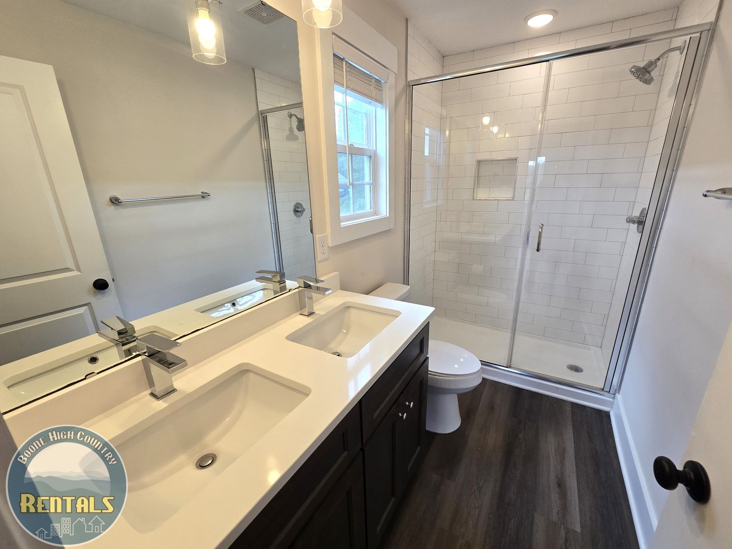 Overlook the Blue Ridge Mountains at Hampton Estates in the 3bd/2.5ba homes built in 2022 on the east side of town! In close proximity to Watauga Medical Center, Appalachian State, and Watauga High School, this modern home is ideally situated in Boone along Highway 421, providing quick access to all the High Country has to offer. Throughout the entire property, you will see dark luxury vinyl plank flooring, high-end finishes, modern fixtures, and all of the perks of living in a brand new property!