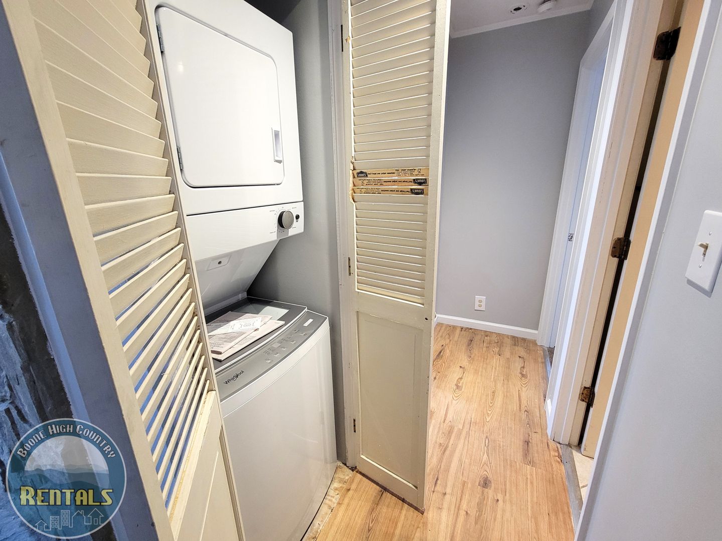 Inside, you'll find a spacious open floor plan and fresh paint throughout. The living room has a coat closet for extra storage and a wood stove for those cold Winter nights. A country kitchen features a stainless steel refrigerator and stove. Down the hall, you'll find two spacious bedrooms, each with a closet. There is a laundry closet with a stack washer/dryer. The bathroom has been newly painted, photos to come, and features a tub/shower combination.